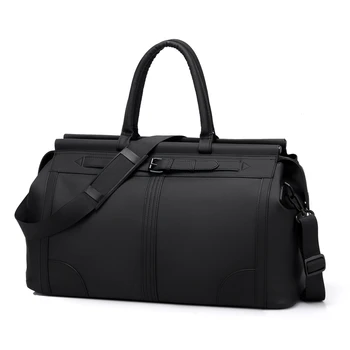 Waterproof PU Leather Large Capacity Men's Duffel Bag with Two Side Pockets Decent Fashion Shoulder Cross Body Travel Bag