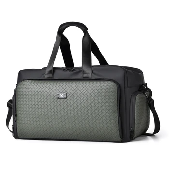 Unisex Large Capacity Fashionable Faux Leather Handbag Waterproof Zipper Decent Duffle Bag with Shoes Compartment