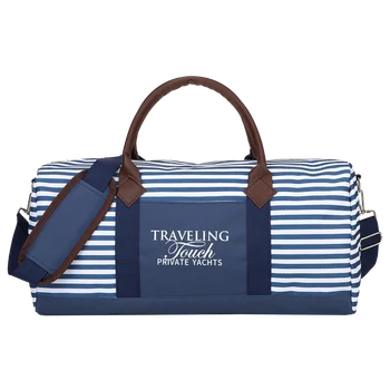 Custom Personalized Large Carry-On Duffel Bag with Stripe Black Oxford PU Handle Large Capacity Fashion Duffel Bag